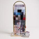 استاند عرض ملابس ديكوري مودرن فاخر مع رفوف جانبية ومرآة – تصميم هندسي معاصر