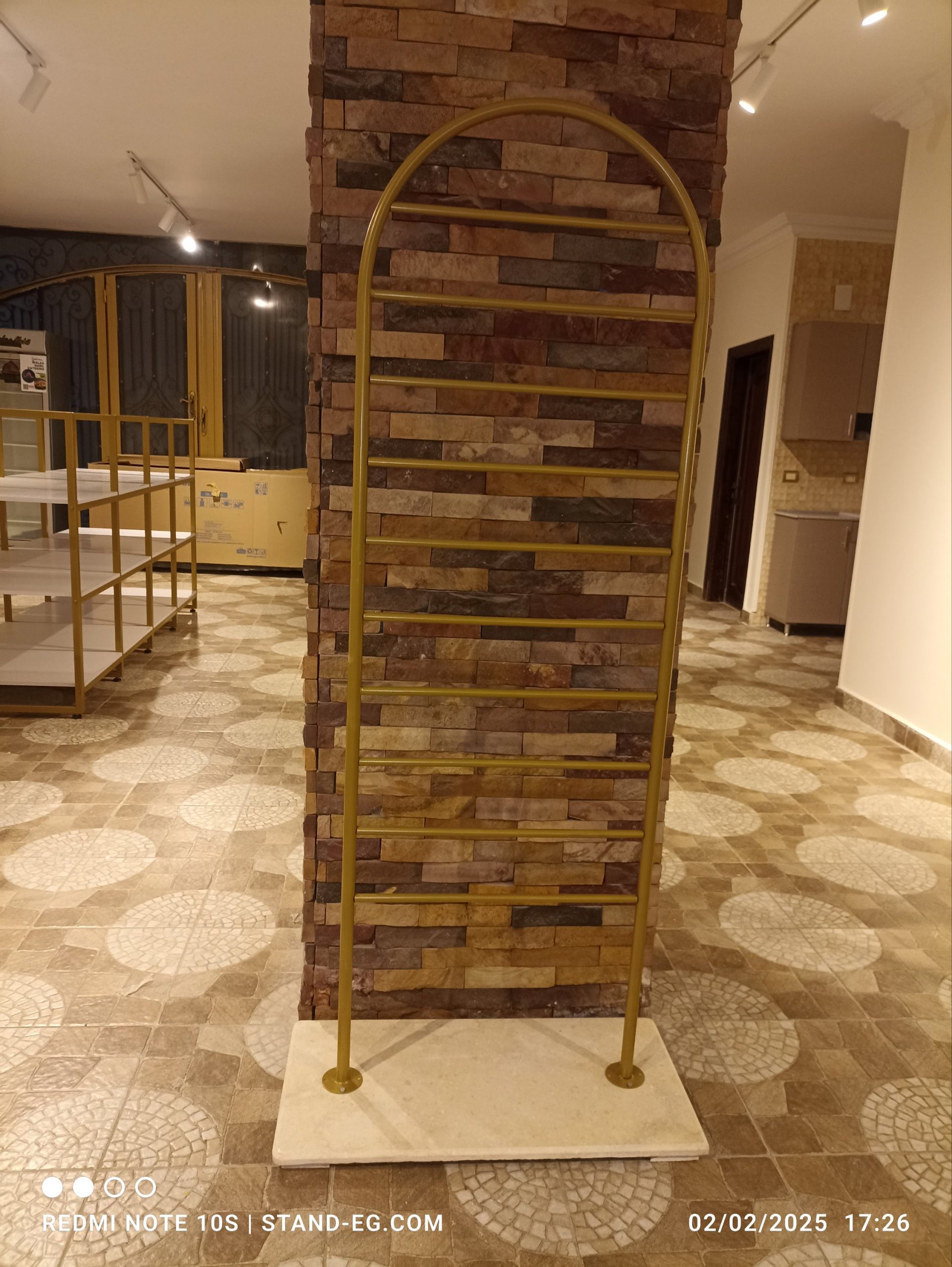 الاستاند مصنوع من هيكل حديد قوي وتشطيب عالي الجودة، شكله مودرن وعملي، ويضيف لمسة احترافية لعرض المنتجات في أي مساحة.