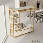 استاند عرض ملابس ديكوري مودرن فاخر مع رفوف جانبية ومرآة – تصميم هندسي معاصر
